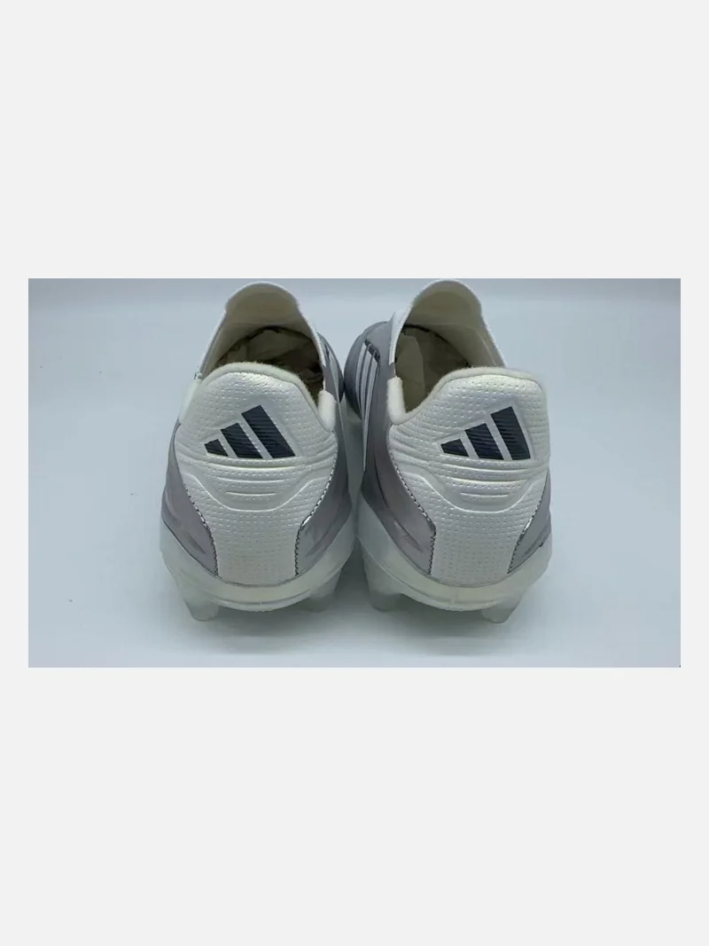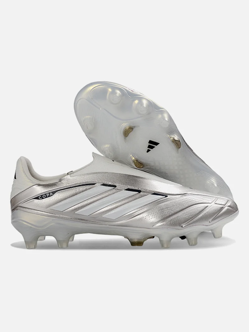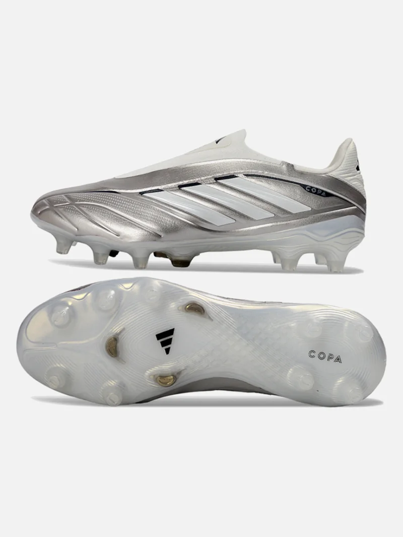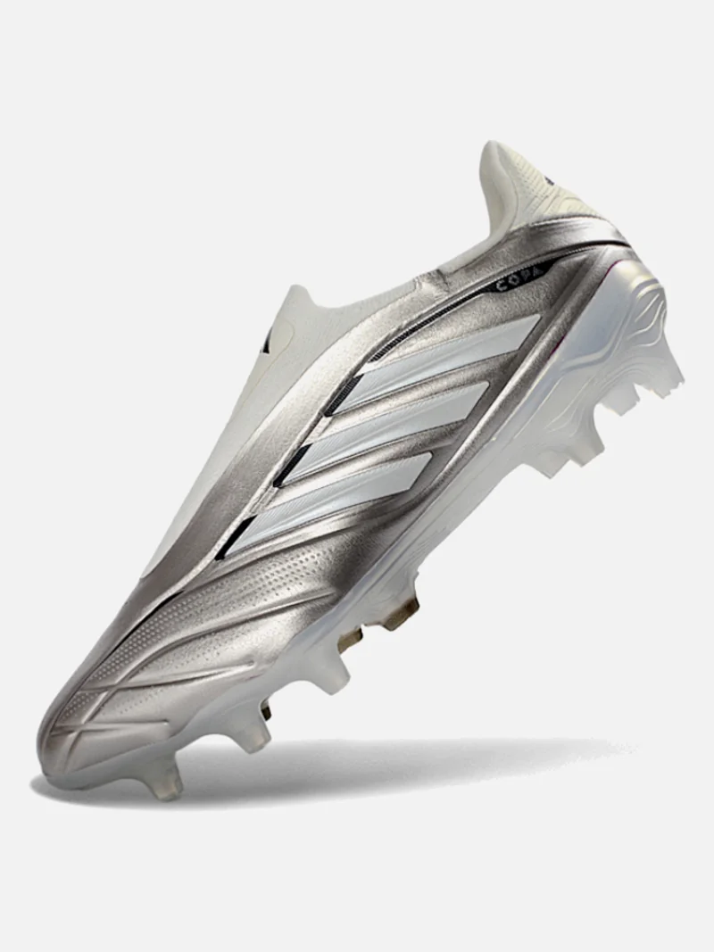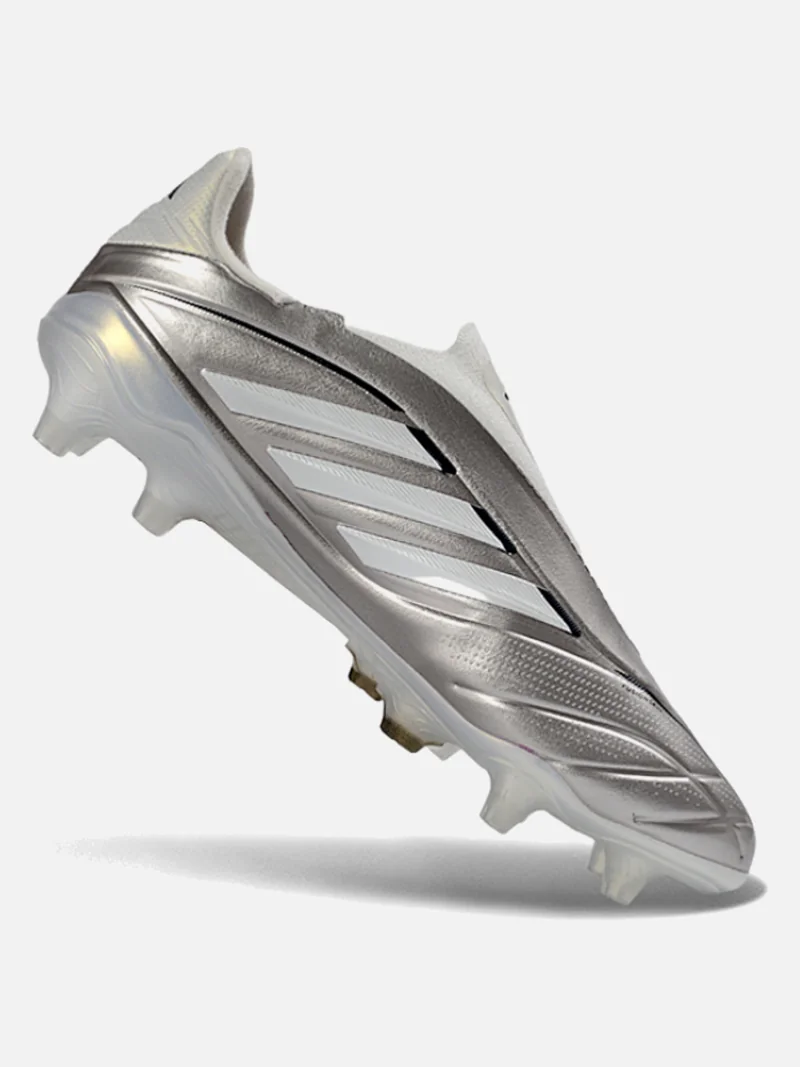 Adidas’s softest leather collar yet meets a redesigned forefoot for instant touch. Silver Metallic upper on FG studs built for firm ground control.