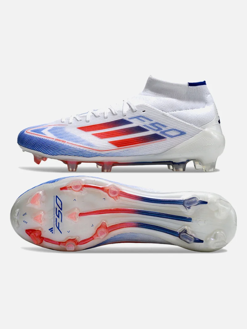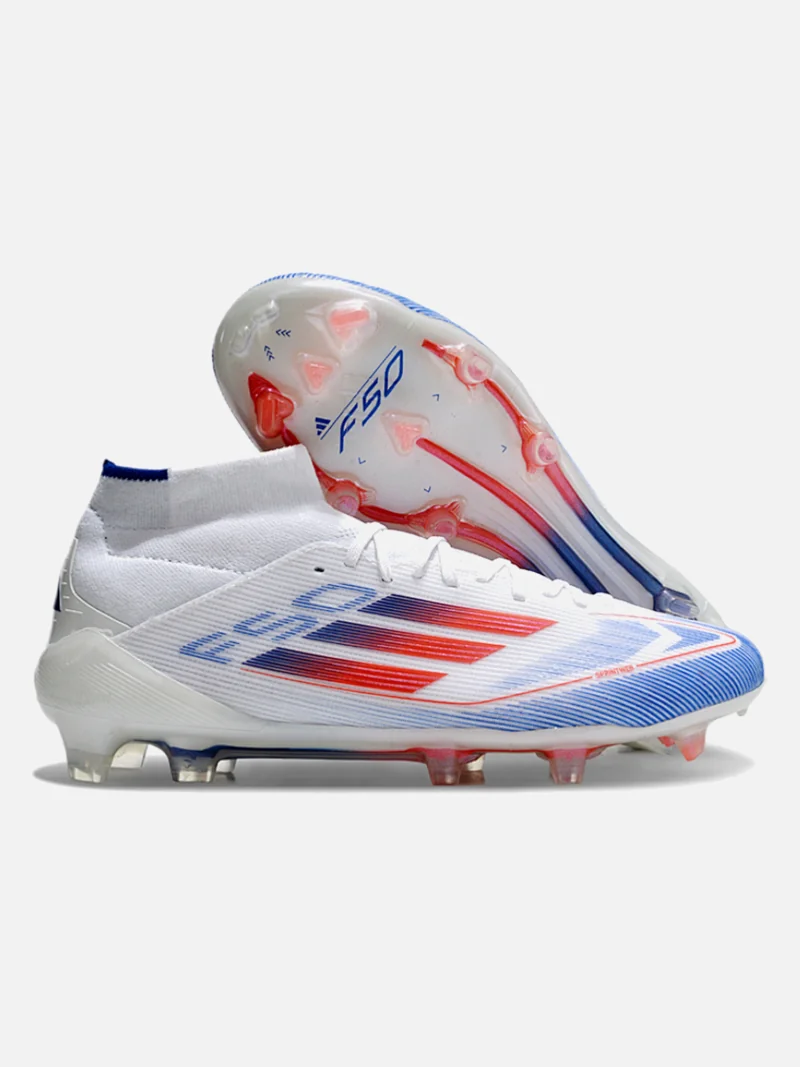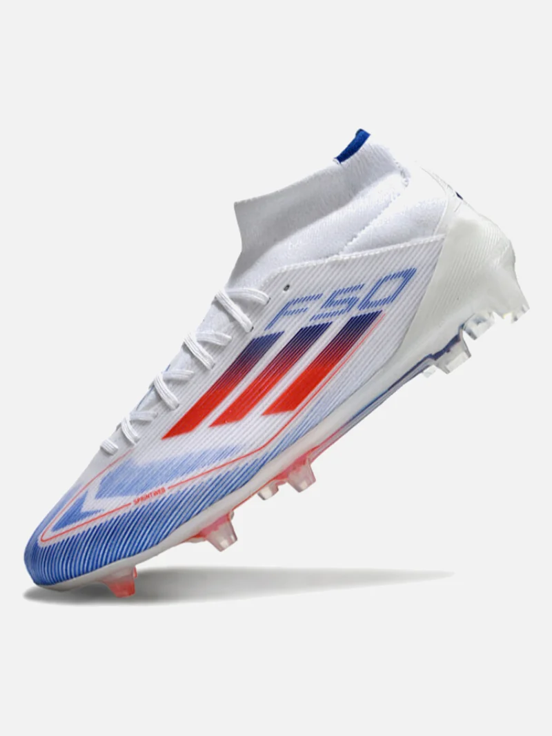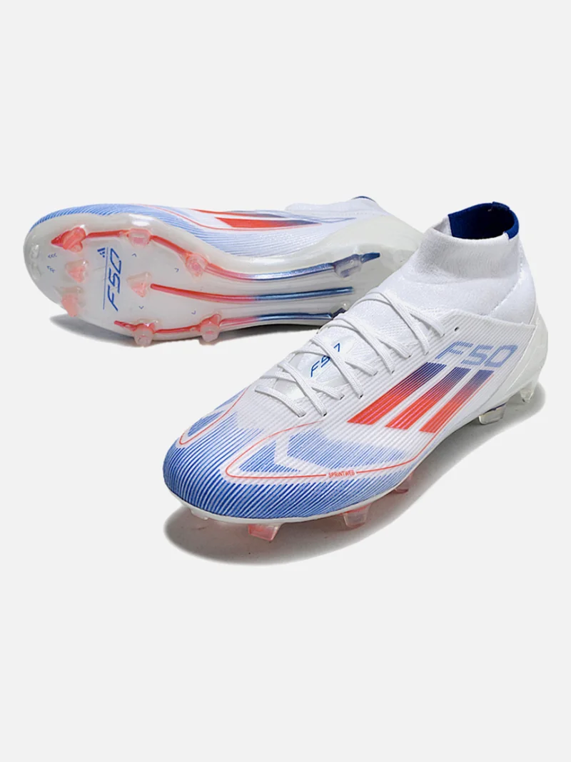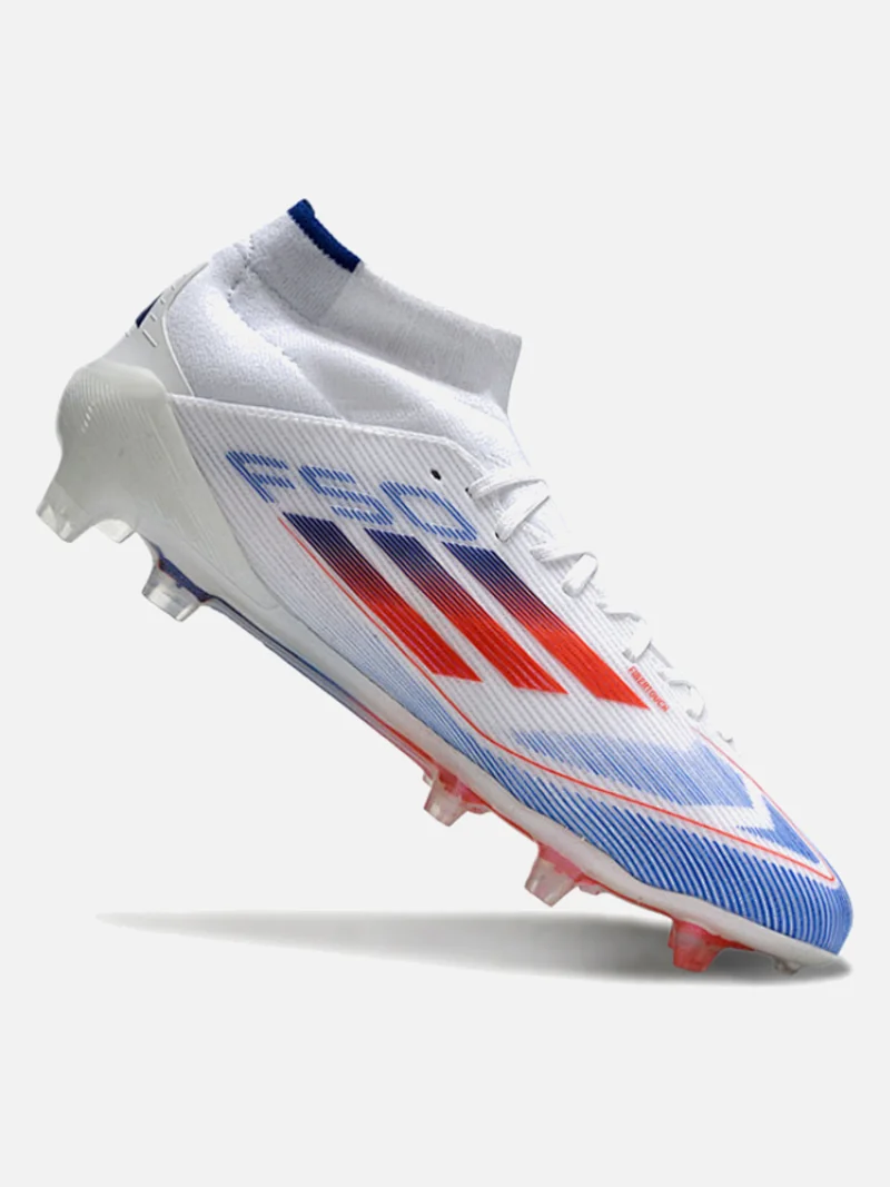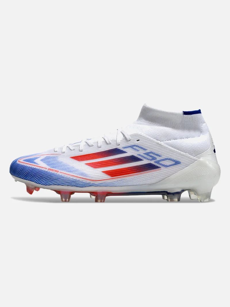 Speed boot with a mid-cut collar that locks your ankle down without the sloppy break-in period. Designed for players who need to accelerate past defenders on firm ground.