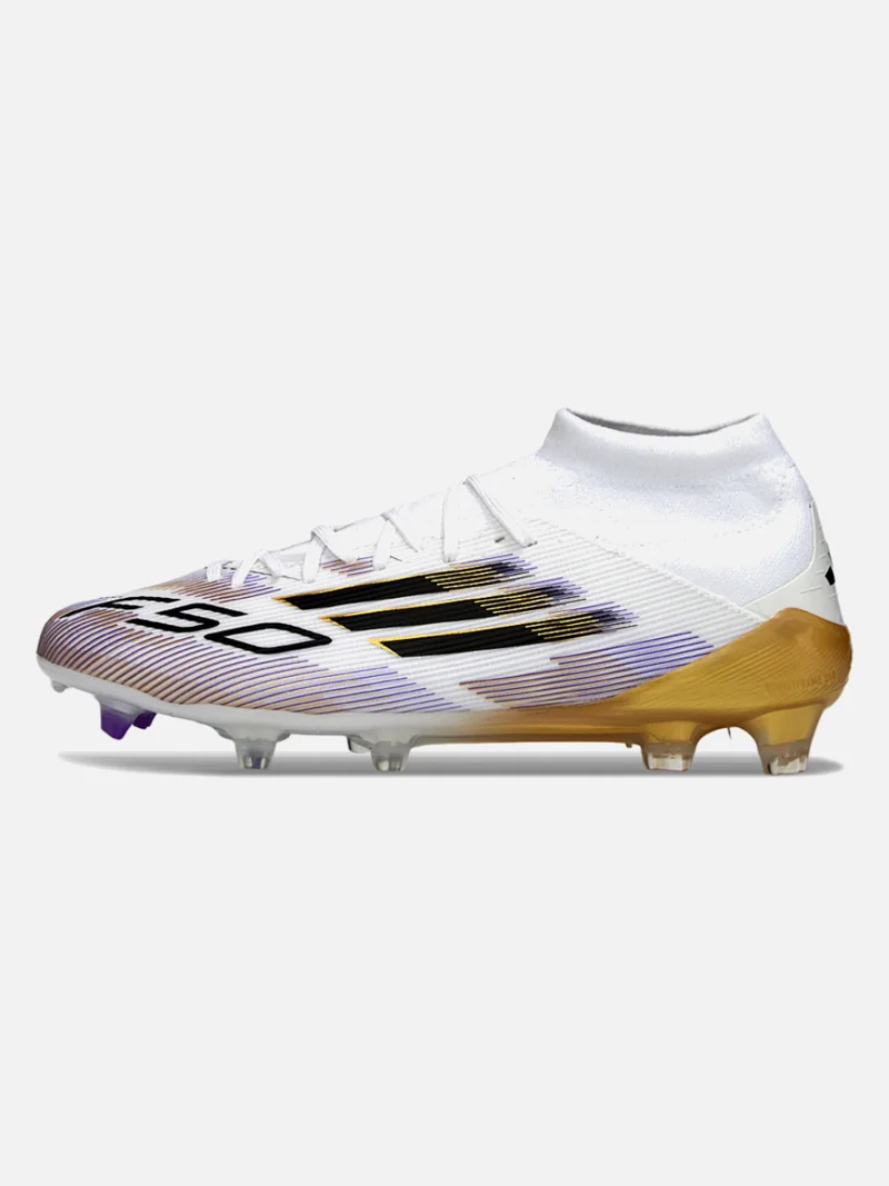 Adidas F50 Mid Elite FG wraps your foot in a snug mid-cut collar that locks your ankle down without stealing your touch. Built for firm ground, it’s the boot for players who need control and precision on the ball.