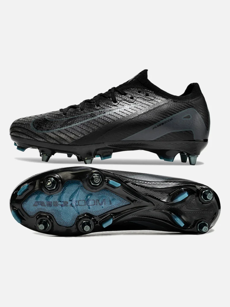 Nike’s lightest elite speed boot with a collapsible heel counter that locks you in without breaking your ankle. Air Zoom underfoot on soft ground studs—built for players who need to feel the ball on wet grass.