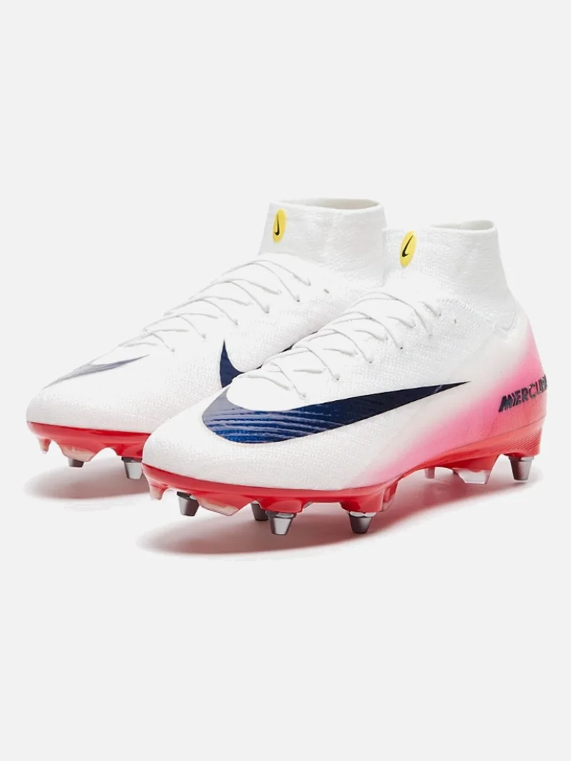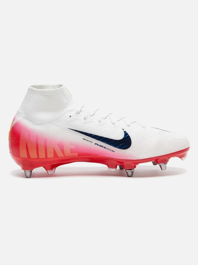 Nike’s fastest silo in SG stud config: a needle-thin upper wrapped around your foot like a second skin, built for the striker who needs explosive acceleration on soft ground. Runs true to size.