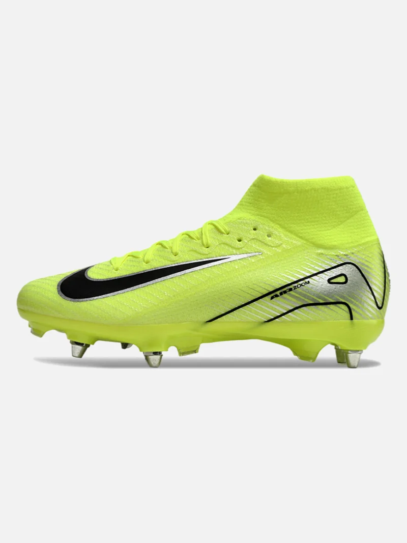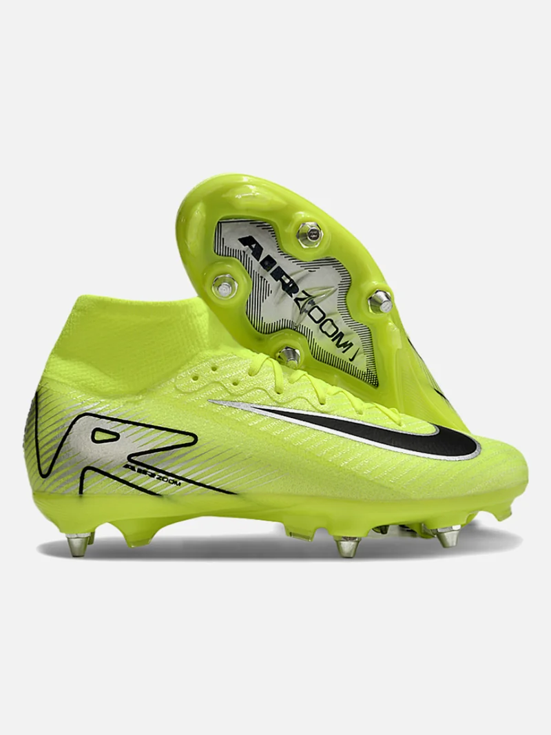 Nike’s tightest collar wraps your ankle like a second skin, giving you lockdown on SG studs built for soft ground. The yellow colorway cuts through mud and grass with electric visibility.
