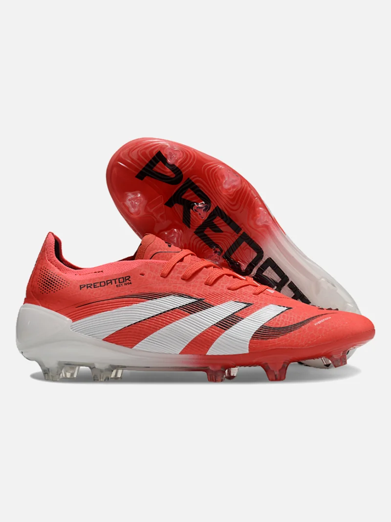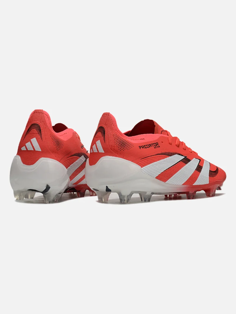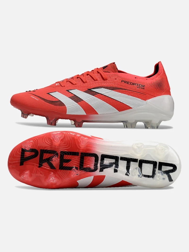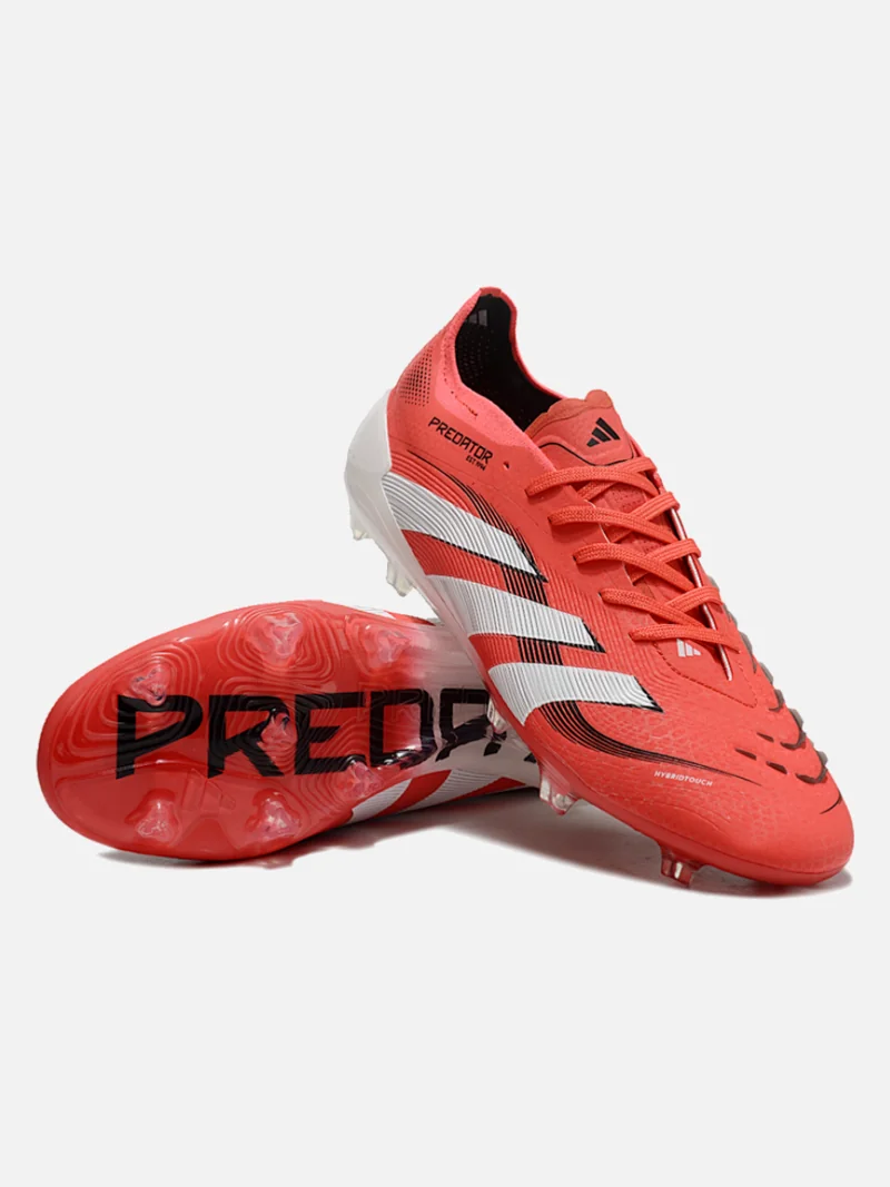 Predator Elite AG pairs a locked-down leather collar with a responsive soleplate built for artificial grass. The upper wraps tight; the studs grip hard on 3G pitches.