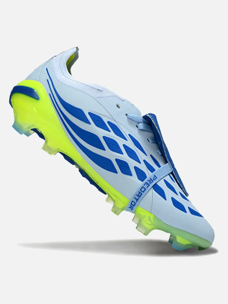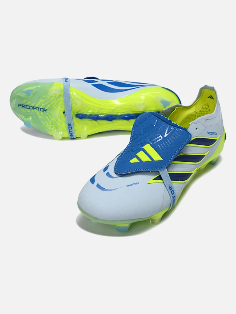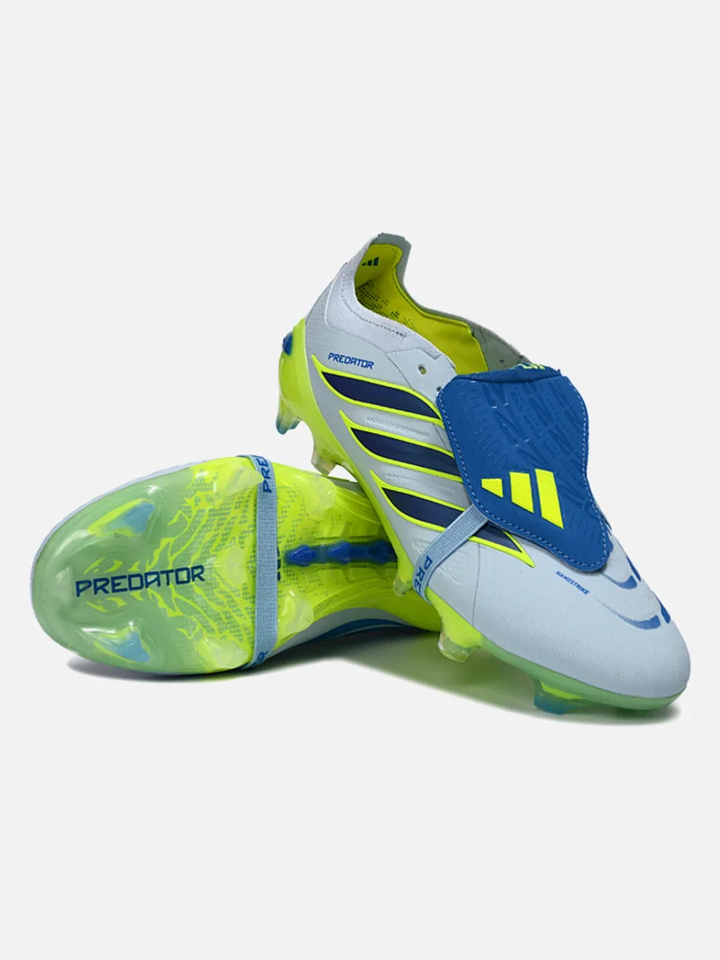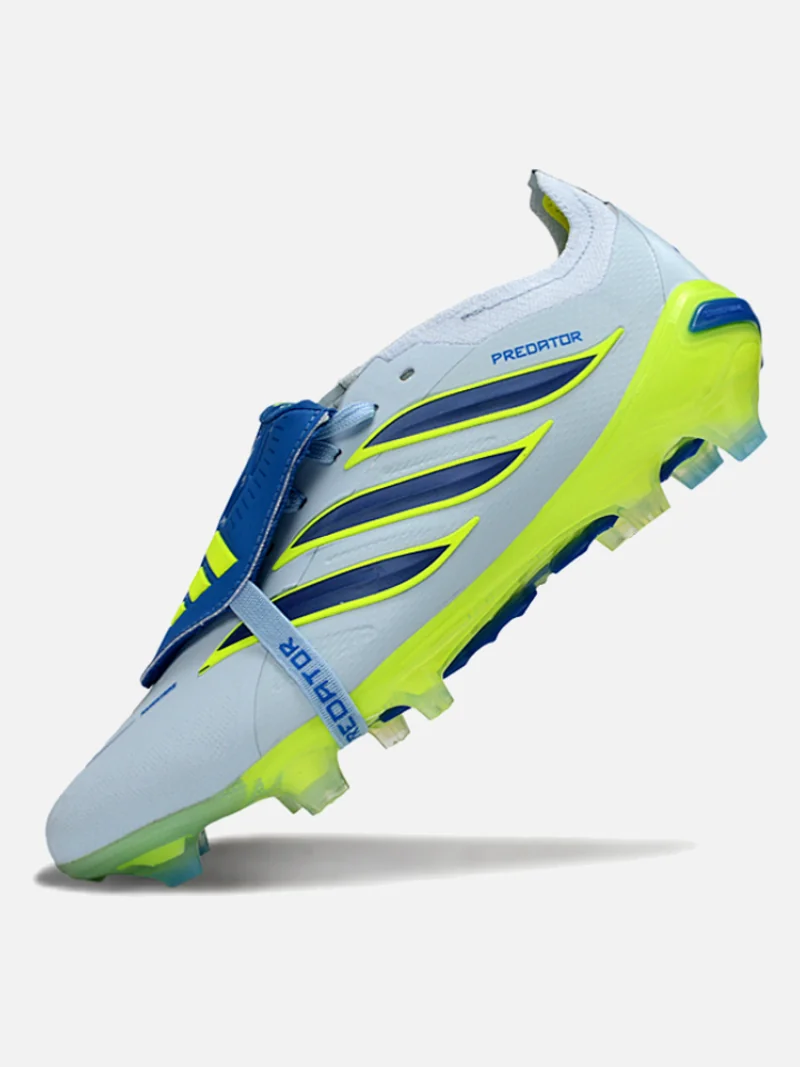 Adidas Predator Elite with the fold-over tongue that locks your foot down on firm ground. Control-focused upper meets a collar that actually stays where you put it.