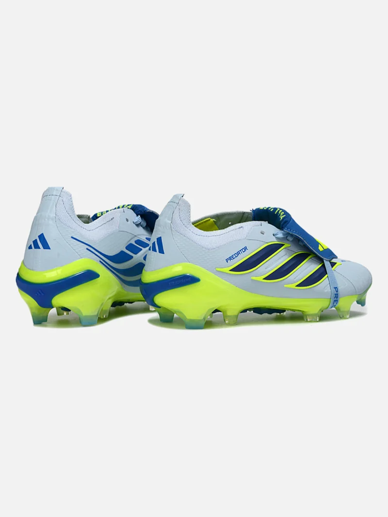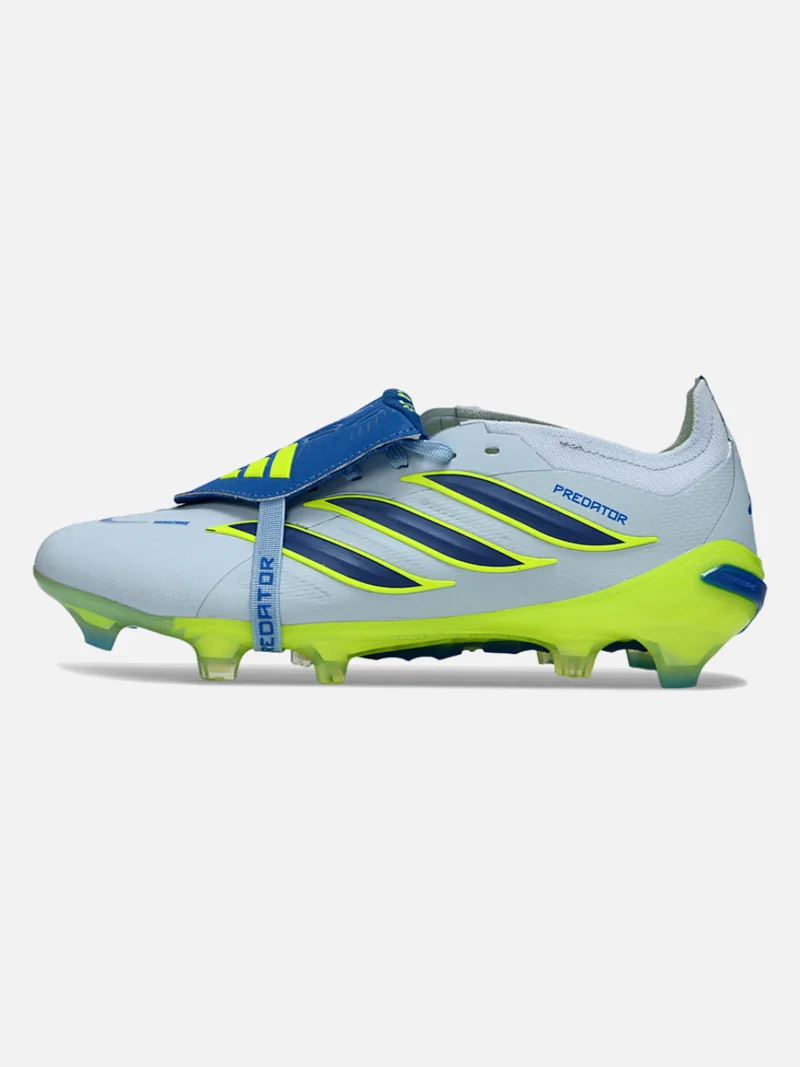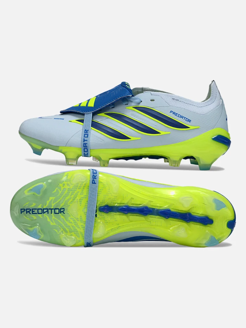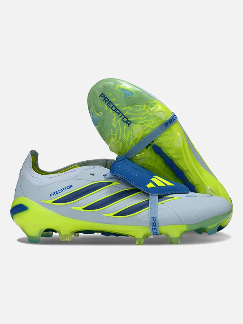 Adidas Predator Elite with the fold-over tongue that locks your foot down on firm ground. Control-focused upper meets a collar that actually stays where you put it.